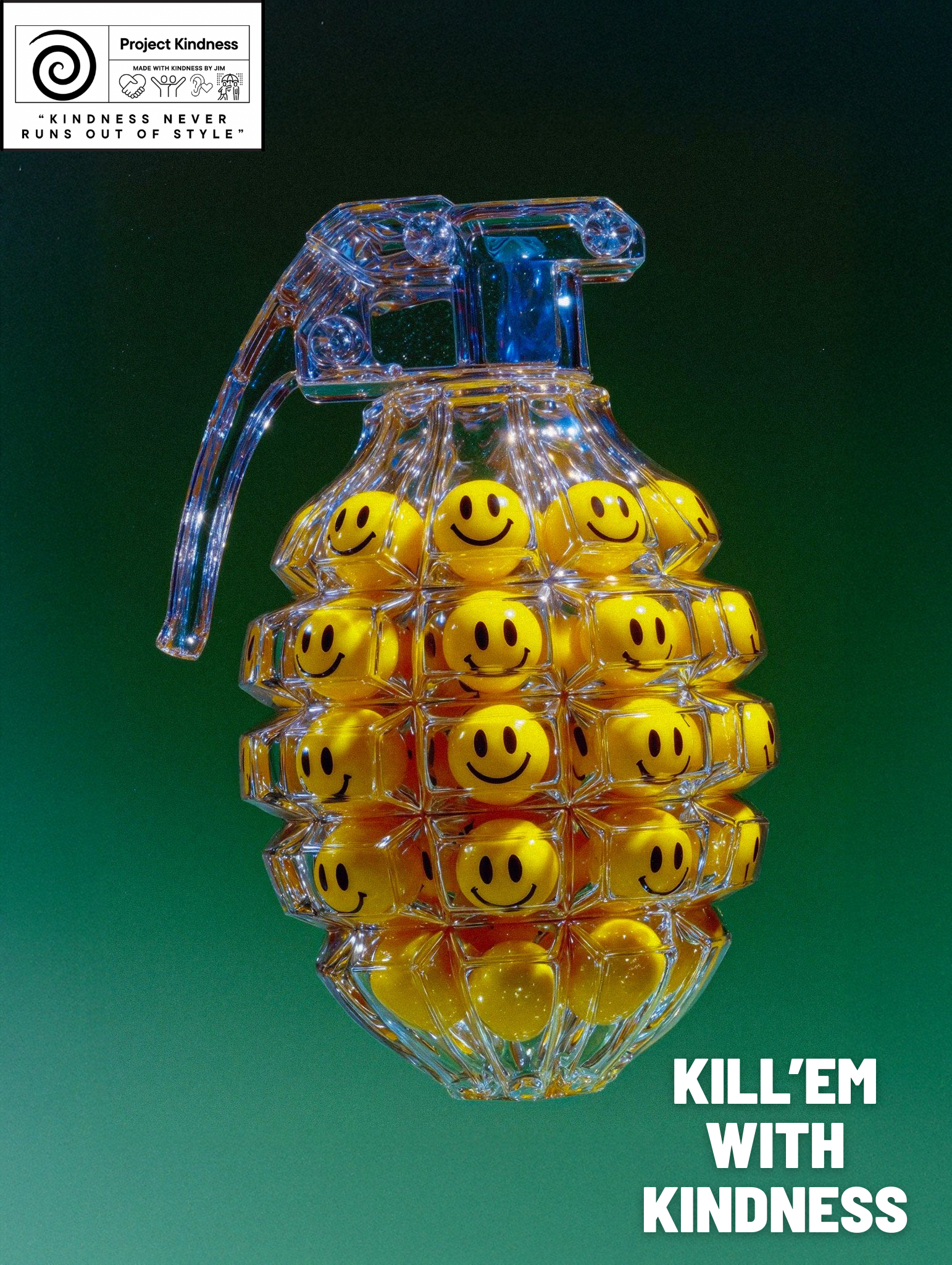 Introducing a brand-new series for Season 3. The Kill Em With Kindness Series takes bold energy and flips it on its head. Built on the belief that strength doesn’t come from aggression—it comes from compassion—this collection blends original, edgy designs from one of my favorite artists with the warmth of a powerful message.