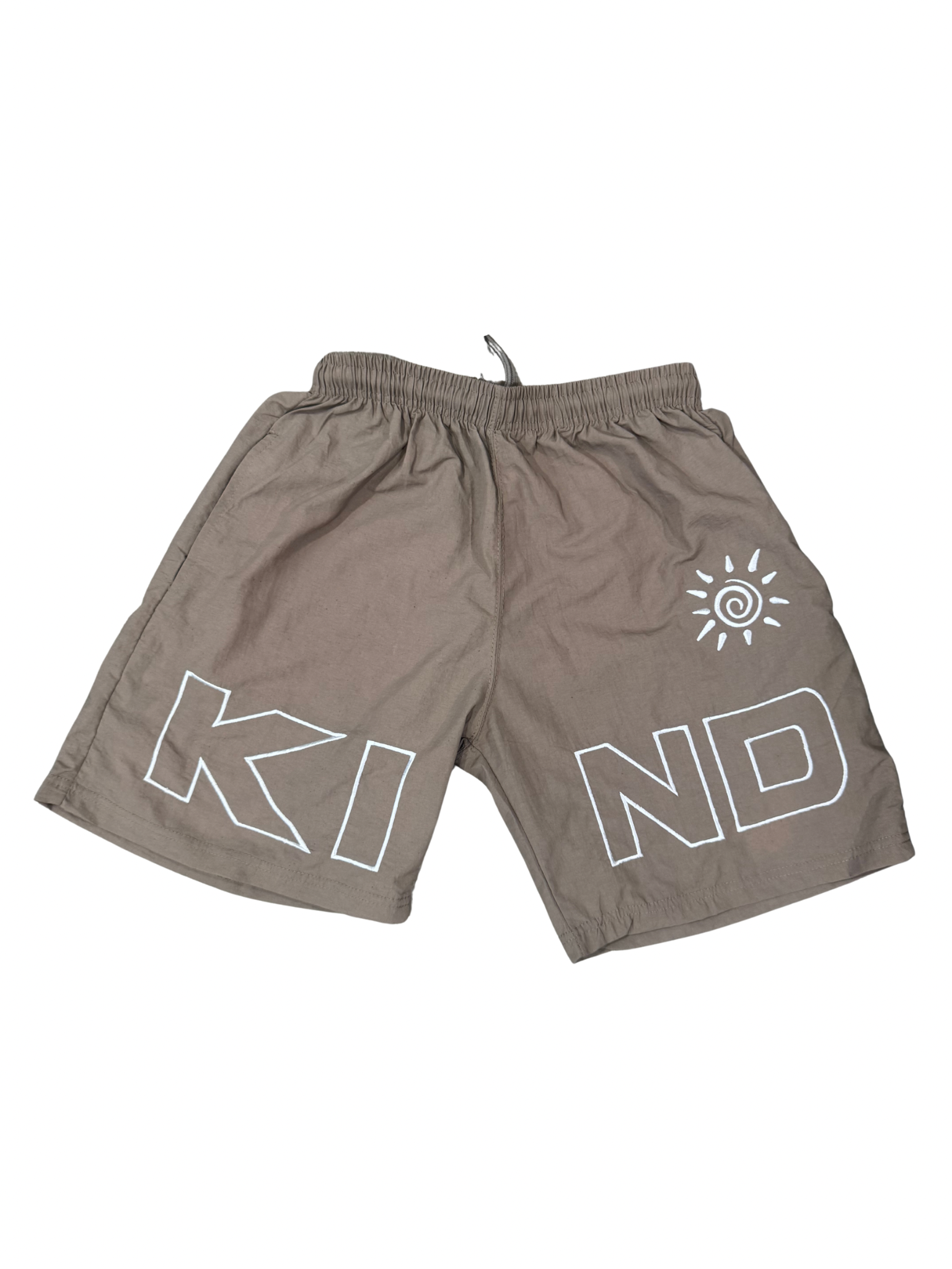 Shine like the Sun! These lightweight woven nylon shorts feature our Kind Sun design — a reminder to bring warmth and light wherever you go. In a neutral Stone Brown, they’re ideal for the gym, your next flight, or just chill summer days.